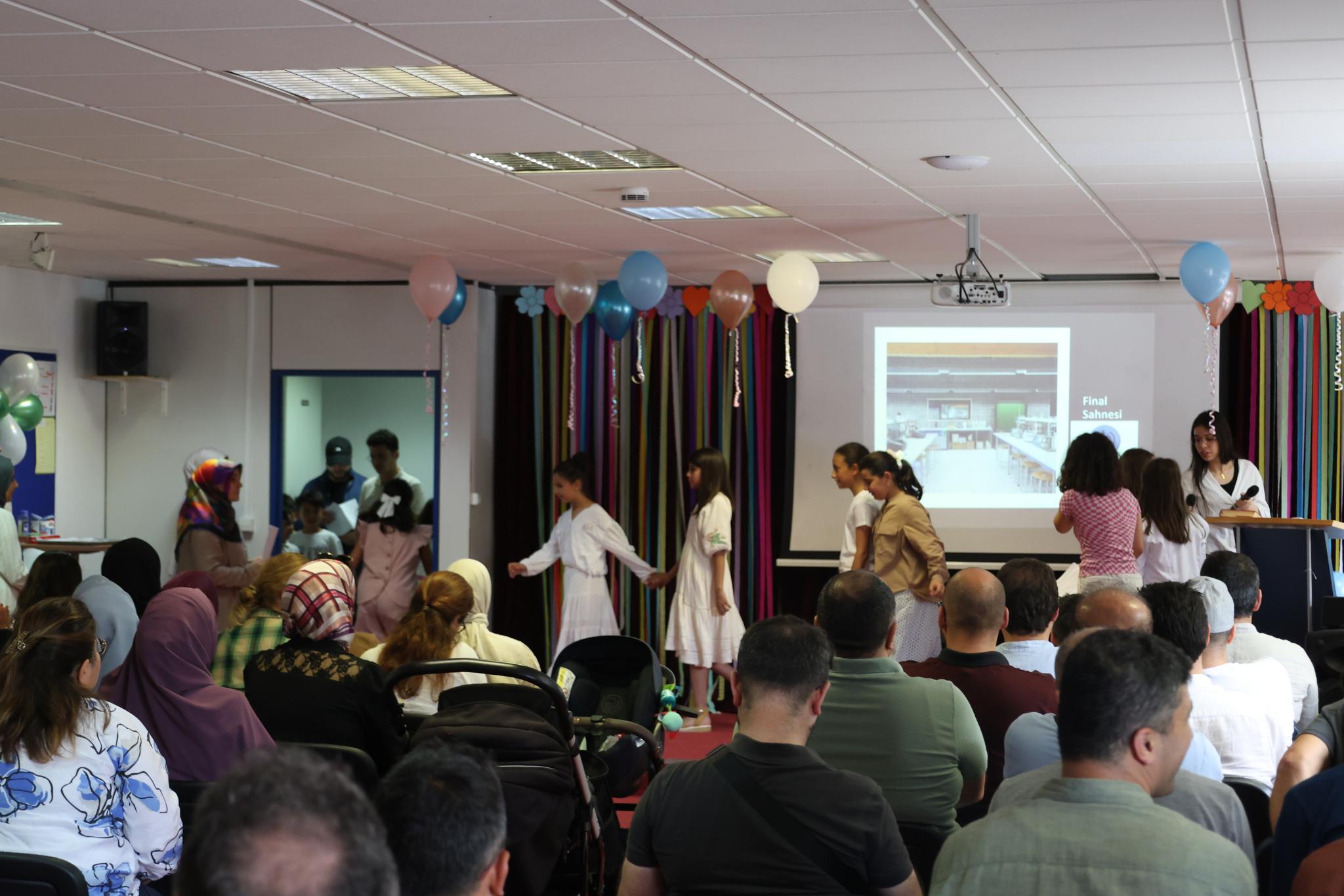 Die Abschlussfeier war ein bunter und lebendiger Höhepunkt, bei dem die Schülerinnen und Schüler ihre erlernten Fähigkeiten in Form von verschiedenen Darbietungen präsentierten. Die Eltern hatten die Gelegenheit, die Ergebnisse der vergangenen Monate hautnah mitzuerleben und die Fortschritte ihrer Kinder zu feiern. Es wurden Tanz- und Theaterstücke aufgeführt, musikalische Beiträge dargeboten und kreative Projekte vorgestellt, die während des Programms entstanden sind.